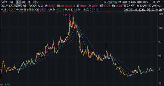 从更长周期来看,在2018年1月在A股上市的视源股份,上市当年归母净利金额为10.04亿元,2024年则为9.71亿元。二级市场股价方面,924行情以来,截至2025年末的股价较此前最低时也反弹了近50%,但是相比2021年4月创下的历史高点,还是不到最高时的零头,足足跌没了四分之三。
